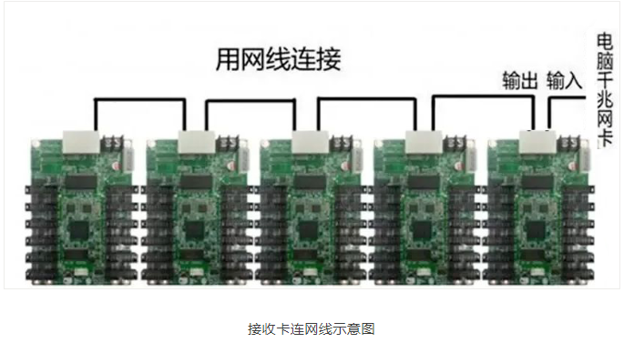 麻豆操逼免费看这里每张卡带三列模组,共36块板,这样每三列装一块卡,从就近的电源上取5V给卡供上电,注意正负极,然后用网线把5张卡连起来,靠电源接头的网口是输入口,右边是第1块卡,也是头卡,输入接的是电脑的千兆网卡,然后输出网口接的是第2块卡的输入口,第2块卡的输出口接的是第3块卡的输入口,这样一直到最后一张卡,第5张卡,输入接第4张卡的输出。输出口为空。