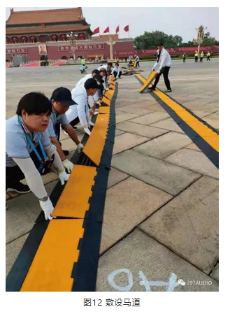 因此,为切实加强庆祝活动天安门广场电力、信号等线缆规范管理,确保安全有序运行,根据市调度运营中心统一部署,音响保障指挥部对各指挥部报送的广场区域流动线缆、马道等设施的信息进行了归纳、整理,结合现场环境布置进行了统一设计。设计时,除了满足各指挥部提出的需求之外,还按“强弱电分开”“不露明线”“便于敷设及撤除”“减少跨越”“就近出线”等原则,对广场各类信号、电力线缆进行了统一设计和规划,对线缆的走向、标识、敷设及拆除方案做了详细的规定。